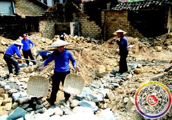 邻里乡亲正在帮助李务愚家重建新房。
