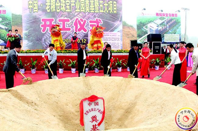 老粮仓珠宝产业园规划面积1000亩,一期规划建设200亩,于今年被纳入我县“两区四园”建设范畴,定位为集研发、生产、加工、批发、零售及鉴定为一体的中国中部鼎级珠宝产业基地。2010年7月,老粮仓镇党委政府确定打造珠宝产业园来培育又一支柱产业的发展思路。之后,其招商、成立珠宝商会、产业园规划、征拆、土地平整、园区配套设施建设等工作获得有序推进。目前,已有湖南金仓投资有限公司、长沙雅福投资有限公司两个投资过亿元的企业正式落户老粮仓珠宝产业园,另外还有多家知名企业表达了强烈的投资意向,洽谈工作紧张推进。此次开工的五大项目,分别为金仓公司和雅福公司的一期项目。其中,金仓公司动工建设金仓大厦和金仓镶嵌厂,两个项目规划用地75亩,总投资约9000万元;雅福公司动工建设雅福大厦、雅福银饰厂和雅福礼盒包装厂三个项目,规划总投资约8000万元,占地44亩。根据规划,五个项目将于明年3月建成投产。