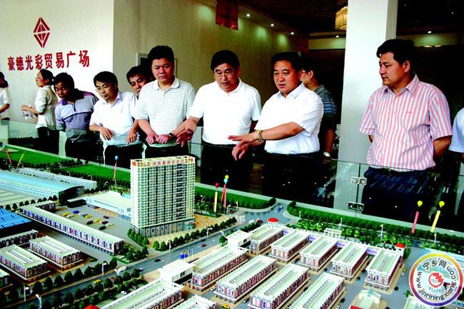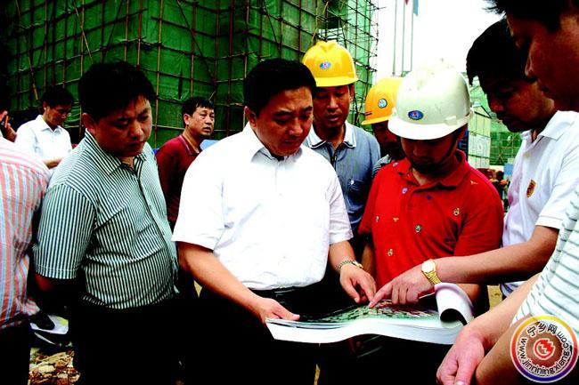 现任镇党委副书记、镇长戴水文(前右五)陪同县委书记黎石秋(前右二),县委常委、县委办主任陈永高(右一),副县长王湘云(前右四),香港豪德集团董事长王健利(前右三)调研城市商业布局