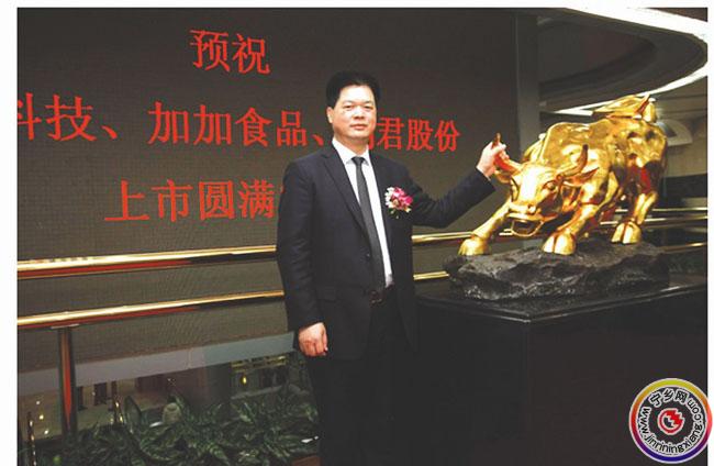 1月6日,我县首家本土上市公司——加加食品集团股份有限公司正式在深交所中小板挂牌上市。加加食品发行价为30元/股,发行规模为4000万股,占其发行后总股本的25%。
