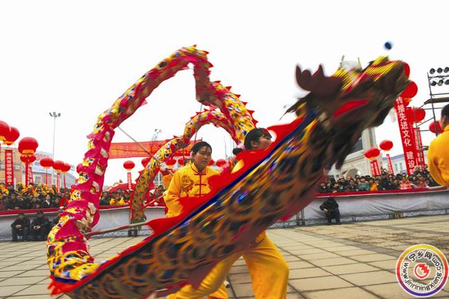 2月5日,“欢乐新春·幸福宁乡”水晶城之夜系列文艺活动——“水晶城杯”宁乡县2012年龙舞大赛、贺新春“好戏连台”、贺新春元宵文艺晚会、2012年元宵灯谜游艺活动、欢乐新春幸福电影周活动在水晶城广场拉开帷幕。县领导刘莉霞、钟利仁、李纯参加活动。图为舞龙比赛现场。
