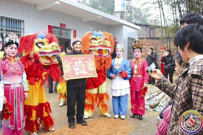 狮子花鼓上门拜年不收红包还送礼