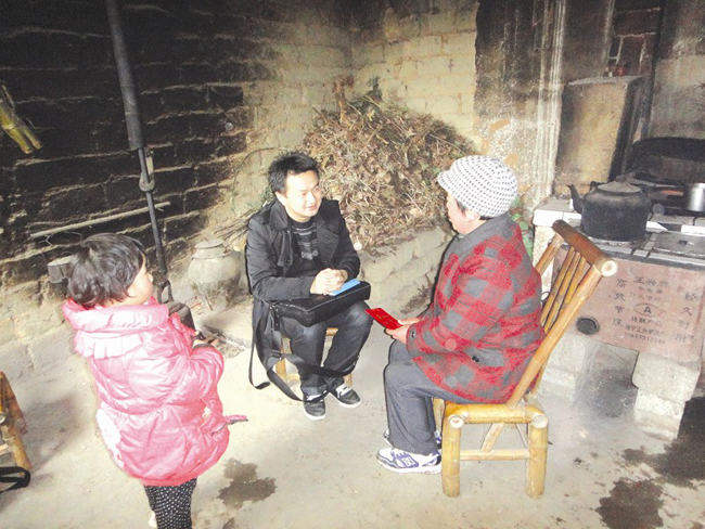 新春伊始,县财政局“一推行四公开”工作组队员通过调研、走访、慰问,听民声、探民情、解民忧,用实际行动将“一推行四公开”制度变成服务人民群众的平台、培养锻炼干部的途径、促进社会和谐稳定的抓手。所有工作队员按照沟通、走访、记录、分析、研处、反馈、评价的工作流程开展群众工作,在服务、宣传、帮助群众的过程中,融洽群众感情,增进群众感情。图为工作队员、县财政局副局长邓湘益(中)入户慰问困难群众。