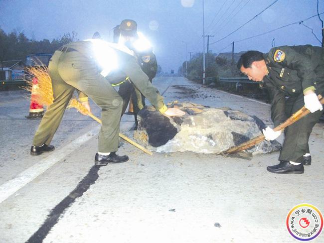 4月11日清晨,S209宁横段路面突然出现10多块大石头,县公路局路政大队队员迅速赶赴现场及时排除了交通险情。据当地村民反映,5点25分左右,他们突然听到公路上一阵响声,跑到路上一看,发现有10多块大石头横陈路面,大的约几百公斤,小的也有几十公斤,于是赶紧拨打了县公路局路政大队电话。队员们20多分钟后即赶到现场,设置警示标志、疏导交通,经过近1小时的努力终于排除险情。据了解,石头系一辆运输石料大货车因货箱破损所致,目前县公路局路政大队正在对涉案车辆展开进一步调查。