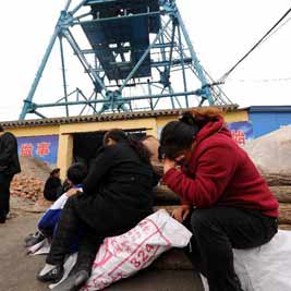 图:遇险矿工家属在矿井外等待。