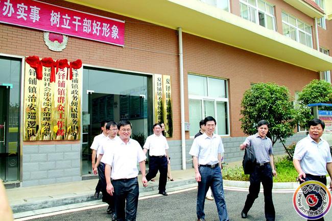 谢立三(右三)等省、市有关部门领导在县领导胡德强(右一)等陪同下视察夏铎铺镇群众工作部