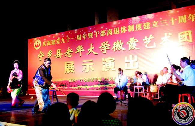 6月14日晚,为庆祝建党九十一周年暨干部离退休制度建立三十周年,县老年大学微霞艺术团的演员们在县城文化广场为市民送上了一场精彩的文艺演出。