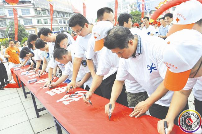 6月26日是国际禁毒日,县禁毒委员会、玉潭镇人民政府在人人乐广场联合举行了一场主题为“巾帼雷锋在行动,拦截毒品净我家”的禁毒宣传活动。县委常委、副县长刘亮出席活动并讲话,县委政法委、县公安局以及县禁毒委成员单位相关负责人,社会各界群众、青年学生、禁毒志愿者代表参加了活动。当天,还举行了“珍爱生命,拒绝毒品”万人签名活动。活动通过悬挂宣传横幅、设立咨询台、展板、播放宣传片、发放宣传资料、现场接受咨询等多种形式,向广大群众宣传毒品危害、展示禁毒成果,激发了群众参与禁毒斗争的积极性。图为“珍爱生命,拒绝毒品”万人签名现场。
