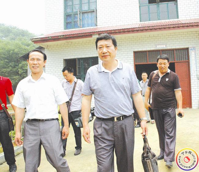 局长胡定平(前右)、党组书记刘亮平(前左)到道林镇奇石村开展“一推行四公开”入户走访