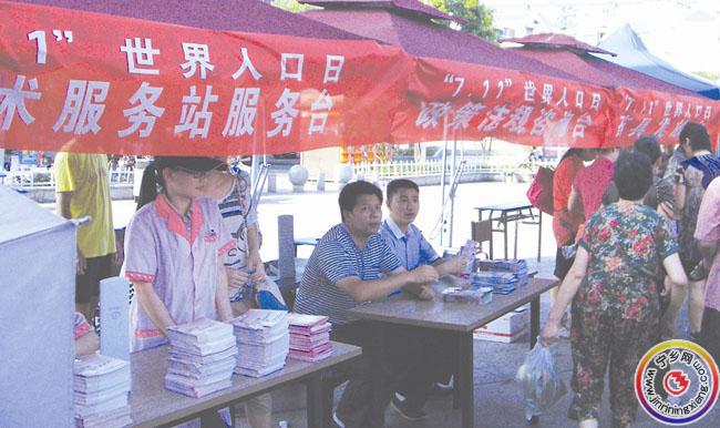 当天上午,县计生局在大润发超市广场采取悬挂横幅、设立宣传咨询台、免费发放计生宣传品和避孕药具、为育龄群众提供生殖健康服务等形式,开展了人口计生政策法规咨询、生殖健康教育咨询等宣传活动;玉潭镇组织开展了世界人口日万人签名活动,并出动宣传车辆宣传人口计生政策法规;城郊乡、历经铺乡分别在东沩广场、东城广场设立了咨询台,向市民发放宣传资料、避孕药具、降暑药品,开展健康咨询、血压测量、义诊等服务,宣传人口与生殖健康,增强公民国策意识。通过宣传服务活动的开展,提高了广大群众的自我保健意识,受到了群众的普遍好评。 文/图 李宏伟 彭征宇