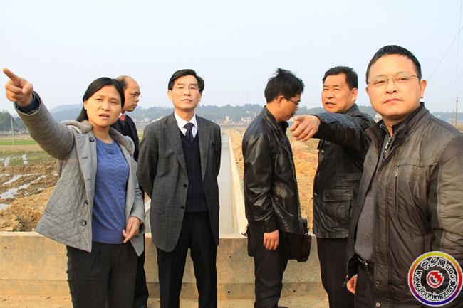 县财政局局长谭启良(前左二)、副局长邓雪辉(左一)一行深入坝塘镇项目区施工现场指导工作