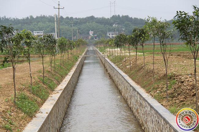 龙保河主排渠上桂花和柳树间植的田间防护林工程
