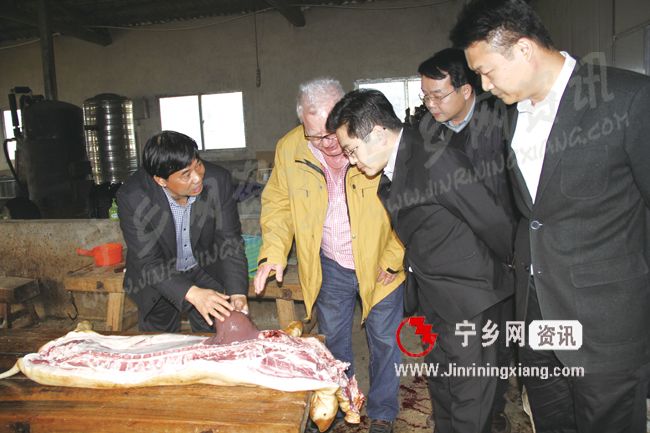 场景回放:2014年11月20日,德国肉类协会顾问、原国际肉类协会顾问弗纳德先生专程来到资福镇一花猪养殖基地,通过仔细察看了各阶段宁乡花猪的特征,认真了解饲养模式,对当场宰杀的猪的肉质进行观察等途径,系统掌握了宁乡花猪的相关特色。从当天起,这位国际顶级专家应湖南乐福来食品有限公司的邀请专程来到我县,开展为期一个多月的宁乡花猪系列西式产品开发指导工作。在当天的实地考察过程中,他对宁乡花猪给予了高度评价,称“这是有机猪,在德国的价格会很贵”。