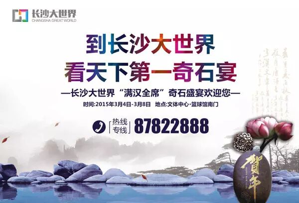 不看天下第一奇石宴,不逛2015宁乡元宵会!3月4日至3月8日,宁乡文体中心,长沙大世界“满汉全席”奇石盛宴贺岁宁乡!