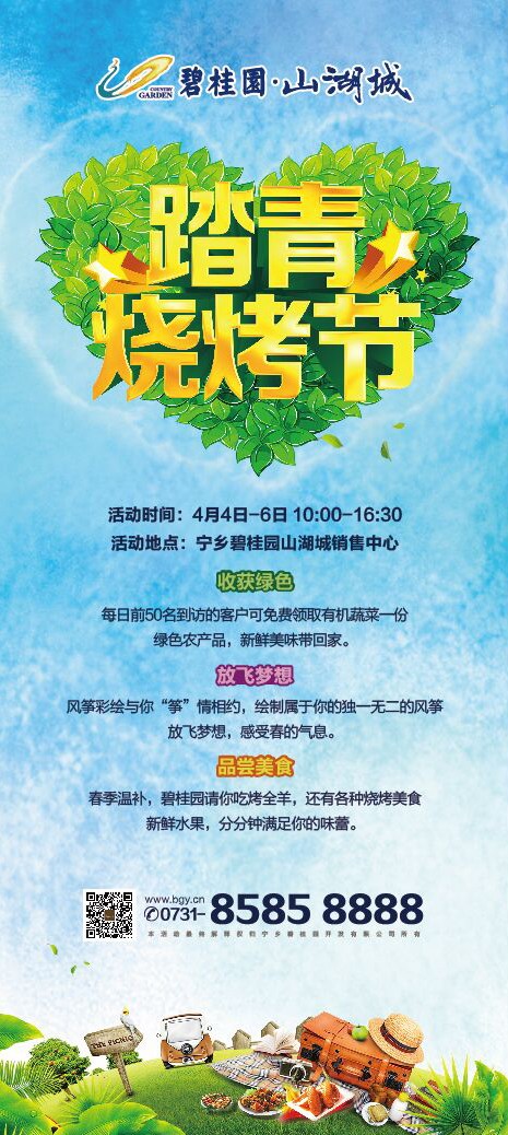 清明节又叫踏青节,在仲春与暮春之交,也就是冬至后的第108天,是中国传统节日,除扫墓祭祖外,踏青郊游也是清明节的基本主题。春回大地,正是郊游的好时节,你准备好去哪踏青了吗?告诉大家一个好消息,碧桂园山湖城“踏青烧烤节”即将于4月4日-6日举行,先来看看有哪些精彩内容吧!