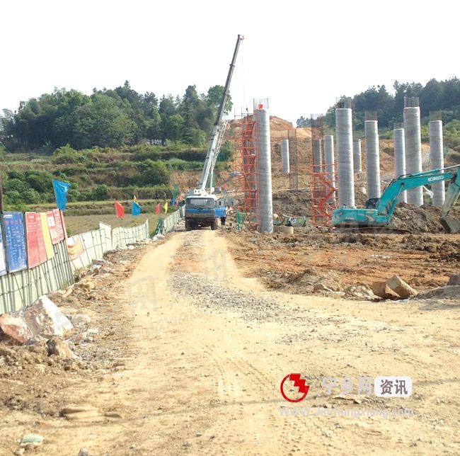 宁乡网—今日宁乡讯 日前,在老粮仓镇仙洪坝村,益阳至娄底高速公路的回子石大桥施工现场,数台挖掘机、推土机、卡车正在进行作业,几排桥梁墩子已经立了起来,正在进行紧张地施工。目前,益娄高速宁乡段项目正在快速推进。