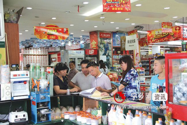 图为检查组正在大热门超市检查。