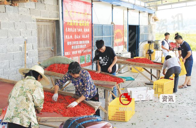村民正在收集辣椒。