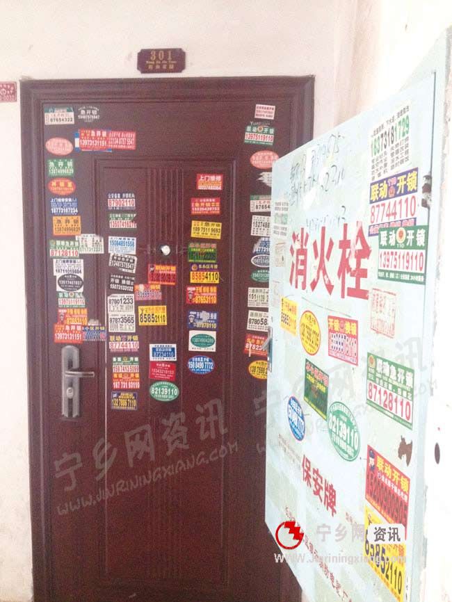 宁乡网—今日宁乡讯 “我们小区楼道里的小广告太多了!都是贴上去的,撕都撕不干净,没法清理!”近日,财富广场小区居民孙先生向本报打来电话爆料。记者随后赶到财富广场小区证实情况。在该小区1栋5楼楼道内,记者看到楼道墙面上、住户的大门上以及消火栓上都布满了疏通下水道、开锁配钥匙、安装打孔等内容的“牛皮癣”,整个楼道显得杂乱不堪,除了5楼之外,其它楼层也同样遭受到了“牛皮癣”的袭击。该栋居民刘先生说,每天回家时看到楼道里密密麻麻的“牛皮癣”,心情非常不好,感觉好像走进了垃圾场。