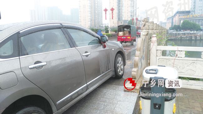 宁乡网—今日宁乡讯 8月10日中午,记者在县城汽车桥上看到令人惊奇的一幕:只见一辆银色轿车一半车身在人行道上,一半车身在车道上,底盘卡在人行道边缘,车辆动弹不得。据了解,原来是一新手司机将车开上了桥梁人行道,该司机因下雨视线受影响,紧急避让行人,驾车临时变道而冲上了桥梁人行道,动弹不得只好求助拖车。前来处理交通事故的交警告诉记者:“这是我第一次见到这么离奇的交通事故,所幸无人员伤亡。”