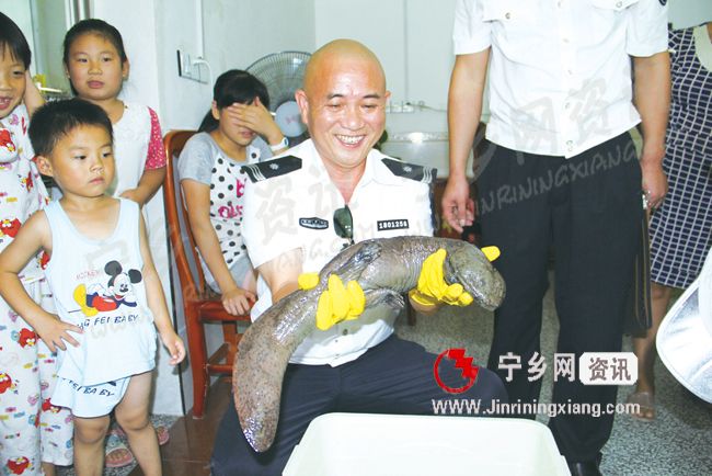 宁乡网—今日宁乡讯 一条长73厘米、重2.1千克的野生娃娃鱼出现在巷子口镇狮冲村的小河中,并被当地村民捉回家中养起来。8月24日,得知该消息后,县畜牧兽医水产局相关负责人带领县渔政监督管理站执法人员来到当地,将这条野生娃娃鱼送到黄材水库放生。同时,给予狮冲村村民周立辉奖金800元,对其保护野生娃娃鱼的行为进行鼓励。