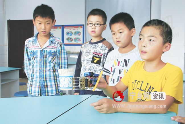 宁乡网—今日宁乡讯 9月23日,玉潭镇中心小学的一间科学教室内,在该校六年级学生谢羽增的操作下,一只名为“手残助抓器”的机械手轻松自如地将瓶装矿泉水、纸杯、砝码盒等抓了起来,其精彩表现博得了在一旁观看的同学的热烈掌声。这个11岁男孩发明这个机械手的目的,就是要为失去双手的残疾人找个好帮手,让他们尽量如正常人一样生活。