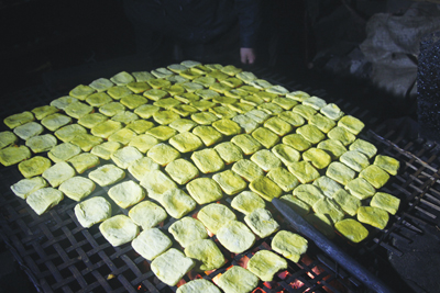 在我们采访期间,陆陆续续有顾客来买香干,其中一个叫彭石山的老人,住在黄材冲,走3、4里路到儿子这里来(住电影院旁)照顾瘫痪的妻子,每天都要来买香干,他说:“李师傅做的香干,细嫩,爽口,味好,我婆婆(妻子)每天要吃,从不要再加工,拿回去就直接吃!”
