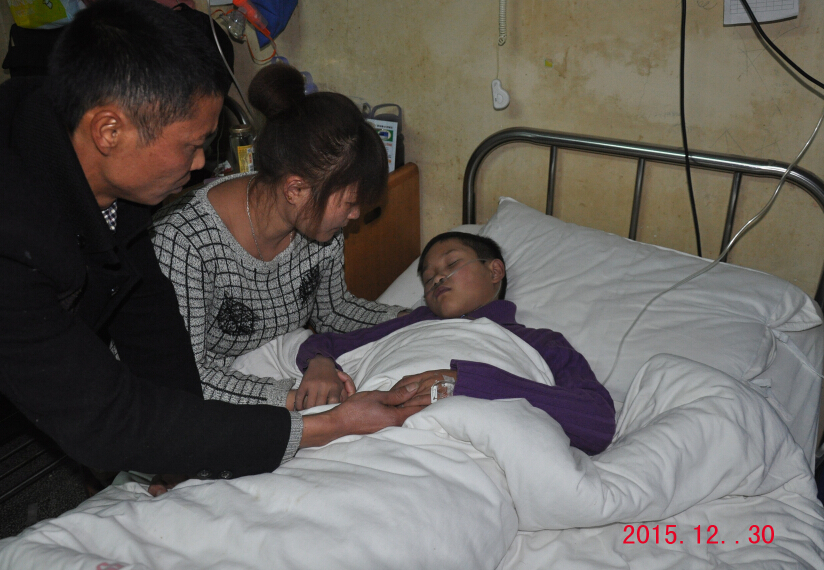2015年12月的一天,小戴依一咳,就咳出了一滩大血,身体随即站立不稳,摇摇欲坠,吓死人了。戴立红随即将小戴依紧急送到湖南省中医药大学第一附属医院心胸外科,接受治疗。经检查,小戴依系先天性心脏病复发,引起血管爆裂吐大血,急需手术治疗。
