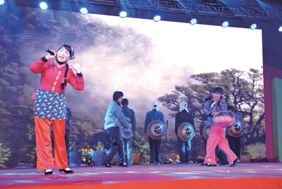 流沙河镇选送的情景剧《唱山歌》,左为领唱伍迎春。