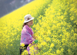 油菜花开,一片金黄,我就像一只蝴蝶,沉浸在花蕊繁盛的怀想中。我颔首微笑,在花蕊里端坐,在花蕊里荡漾。温润如玉的语言,一颗一颗落下来,我的过敏来自于这场久违的幸福。油菜花像三月里一把剪刀,把乐安村裁剪得如此美丽。我深深浅浅的踏着这逼入肌肤的芬芳,朋友的镜头一直追随着我,凝固了太多美丽的瞬间。我的睫毛招摇着那些早起惹花的蜜蜂,而油菜花扭动着腰肢伴随着我,行程中,我得到了忘我自由的莫大慰藉。