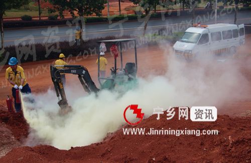 记者在现场看到,在烟雾弹释放浓烟营造的事故现场,一名“受伤”工人躺在挖机挖出的泥沟边,正痛苦呻吟,挖机操作员慌乱中弃车跑到十米开外打电话救助,情况紧急。事发约3分钟,宁乡新奥燃气一台燃气110抢修车和一台工程车到达现场。16名身着黄色工作服的专业抢修人员迅速按预案,组织人员对事发区域实施交通疏导、对影响范围内人员进行疏散,对发生险情的天然气管道进行切断,并将受伤人员迅速转移至安全地点等待120的到来。在约10分钟的紧急处置过程中,消防车和救护车先后赶到事发现场,据县应急办现场指挥人员核实,120救护车从接警至现场处置仅用6分钟,119消防官兵从接警至现场处置仅用5分钟,此前他们并不知道这是应急演练。