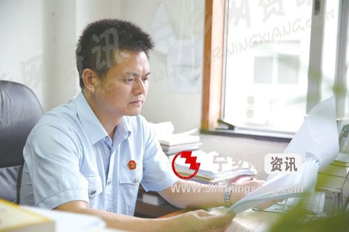 图为行政审判庭庭长文跃兵在认真看卷宗