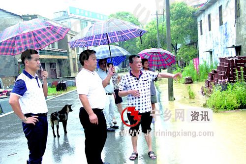 县烟办主任肖年富(左二)和党组成员、支部书记洪国华(左一)一行现场察看灾情