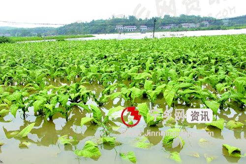 洪水使烟田成为一片汪洋