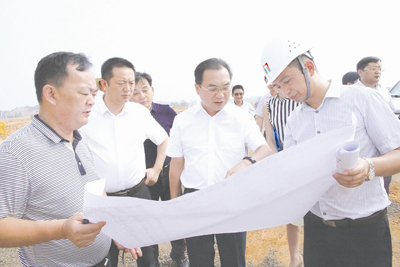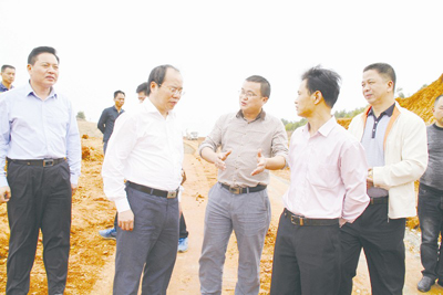 县委书记谭小平一行现场视察龙江大道金玉段建设工地。