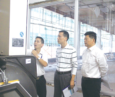 在国家级宁乡经开区,长沙格力暖通制冷设备有限公司作为珠海格力在全球布局的第十个空调基地,一期工程占地716亩,建筑面积38.8万平方米,项目投资20亿元,年收入可达100亿元,是家用空调和商用空调等产品的综合性生产基地,整个工厂的建设以“绿色工厂、智能工厂”为目标来规划实施,采用大量国际领先和格力自主研发的智能装备,工艺水平、生产效率和节能环保等方面都走在行业前端。如工厂本着“四节二保一加强”的原则,采取了光伏发电、余热回收、中水回用、能源监控、保温环保材料等一系列措施。其计划投资1152万元,利用厂区的注塑车间、总装车间、钣金车间的部分屋顶,安装太阳能光伏组件,后期光伏电站总容量可达20兆瓦,所发电量直接供设备用电,多余电量还可并网。肖波对该企业抢抓机遇,努力向规模、管理要效益的做法给予高度肯定。