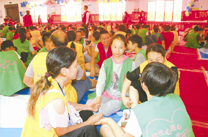 图为学生、家长、教师在义工团队的引领下相互倾诉心声。