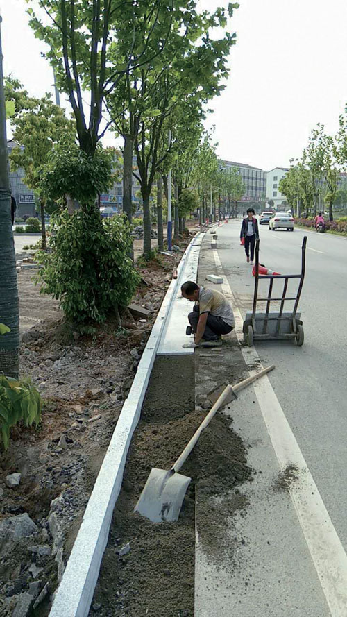 灰黄旅游公路横市段正在进行人行道提质改造。本报记者 李先强 摄