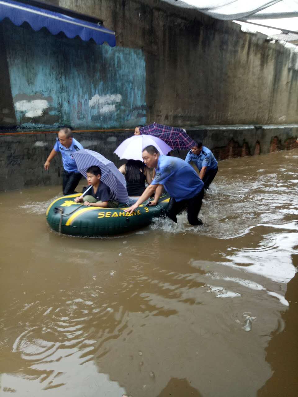 随着暴雨持续不断,城区各内渠水位再次猛涨,部分群众生命财产安全受到洪水威胁。从6月30日起,县城管局全局动员,进入防汛一级战备状态,所有人员取消休假,按照预定战位迅速部署到位,24小时值守,排查险情、转移人员、疏导交通。局班子成员按街道分片负责,各自在责任区一线指挥,局长丁新军则化身“救火队长”,随车携带皮筏艇,哪里险情重就出现在哪里。