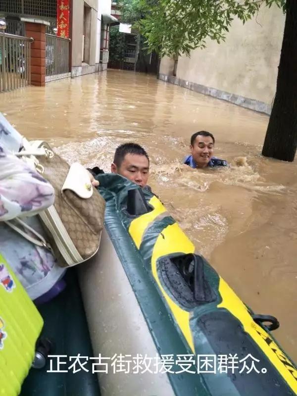 正农古街是受灾最严重的几条街道之一,洪峰过境时最深处超过3米,城管队员用皮划艇转移被困的老人、妇女和儿童。
