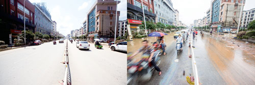 左图为灾后环境整理后,右图为灾后环境整理前。