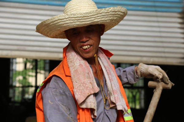 68岁的郭国山,他是历经铺街道的一位环卫工。草帽、铁锹、水,这是他的标准配置。黝黑的皮肤上,汗珠清晰可见,一天工作下来他至少要喝5瓶水。凌晨4:30,便开始工作,直至下午5:30他的工作才结束,最近几天,对于他来说加班是常事。在他负责清扫的区域平日小拖车3车就够了,而现在,他每天要拖不下10车。“特殊时期,没有什么可抱怨的。”