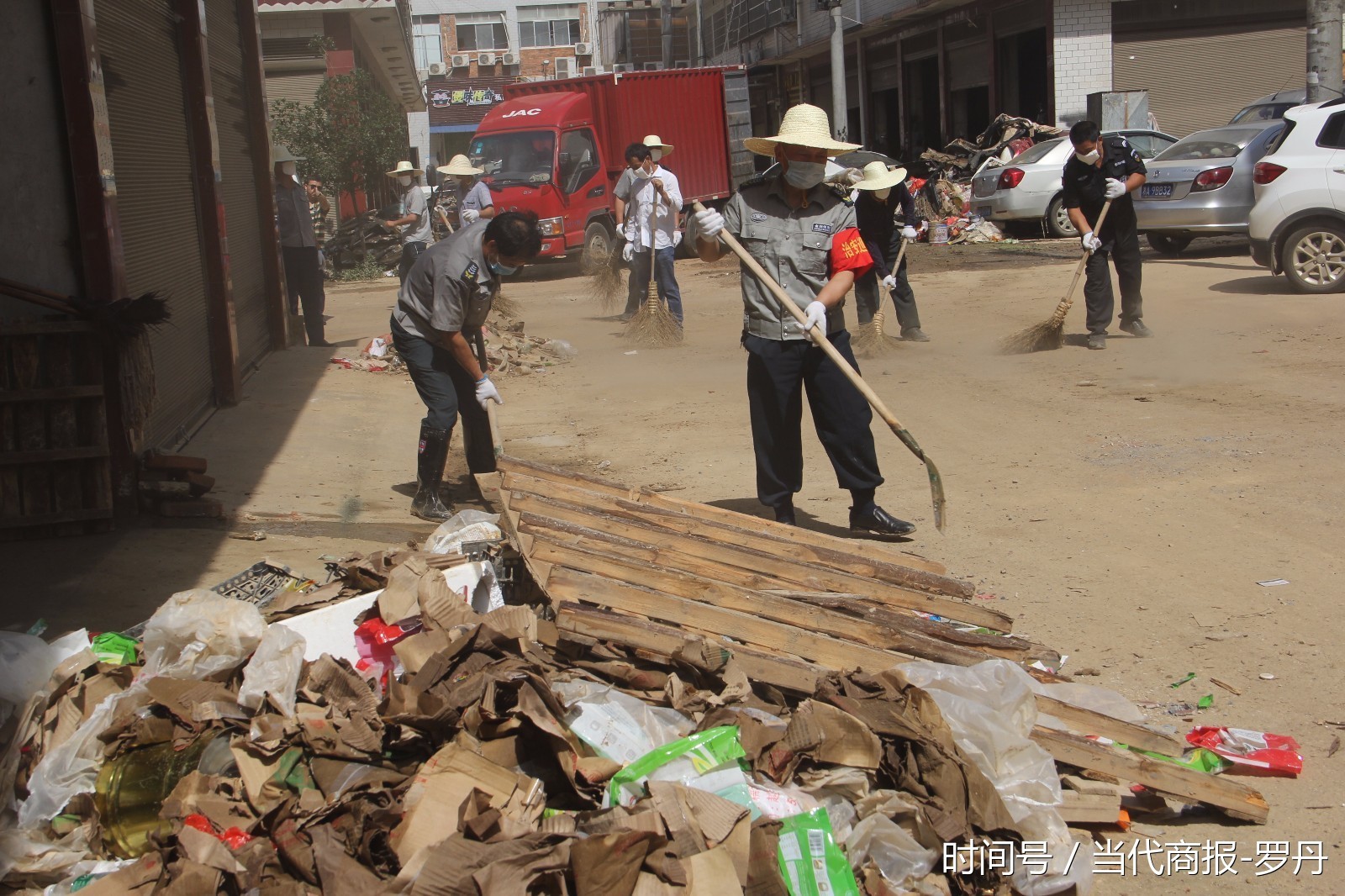 为使此次环境清整行动取得扎实成效,金剑保安召开了专题会议,制定了专门方案,向公司员工发出了倡议。5日上午,该公司近100名保安人员顶着烈日来到沙河市场、工贸街一带,手持铁锹、扫帚等工具铲扫垃圾。同时,公司还租来9台车辆和3台铲车,将清除成堆的垃圾装车运走。经过两天一夜的紧张作业,他们共清运垃圾700多吨,除沙河市场、工贸街外,还涉及县城汽车东站附近的一些区域,使原本脏乱不堪的环境得到了有效改善,受到了当地居民与商户的一致好评。