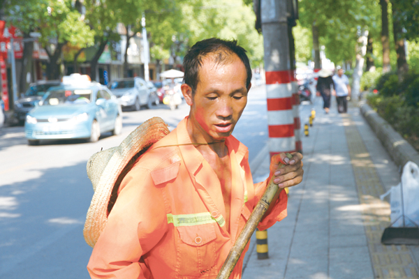 ▲战斗在高温烈日下的“城市美容师”。本报通讯员 左雪冰 摄