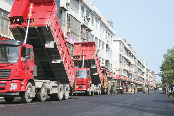 工人正在市场里铺路。本报实习 记者 张奇涛 摄