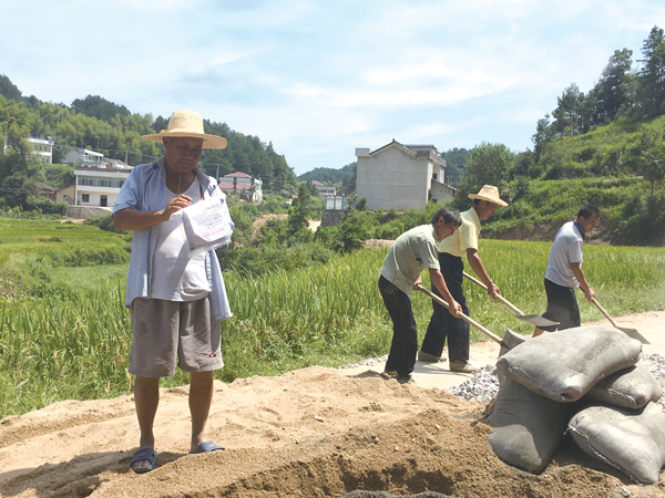 在灾后重建工作中,青山桥镇成立了三级队伍:突击大队、突击中队、突击小队,三位老人虽然年事已高,但主动承担了突击小队灾后重建的主持工作。在老人们的带动下,村民汤伏初、戴建明也参与进来,制定施工方案、监督施工质量。连日来,虽然秋老虎持续发威,但丝毫没能阻挡老党员们带领村民重建家园的决心和斗志。8月25日,记者在石龙的一处山路看到,几名工人戴着草帽拿着铁锹拌水泥砂浆,陈岳鹏老人正拿着纸笔记录,汗水湿透了衣服。“今年的洪灾到处受灾严重,影响了村民的生产生活,作为一名有着50多年党龄的老党员,我应该带好头。”陈岳鹏老人今年79岁了,但他每天早上六点出来,晚上七点收工,奋战在灾后重建的工作岗位上。“群众信任我,我就应该尽职尽责,把事情做好。”戴普忠、戴旭初两位老人也都70多岁了,他们也像陈老一样,每天起早摸黑,不辞辛劳。