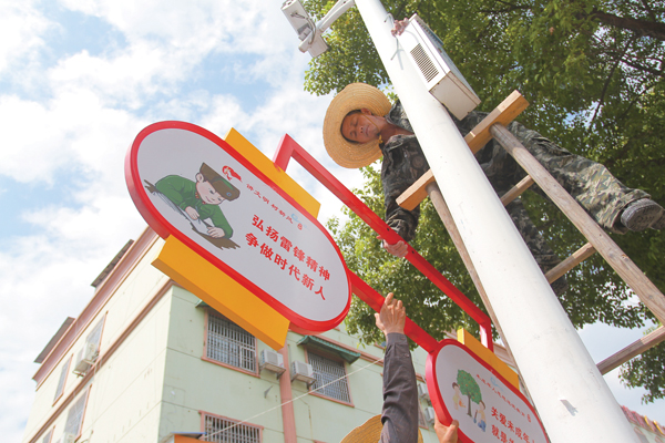 为县城所有路灯灯柱上安装文明标语牌。