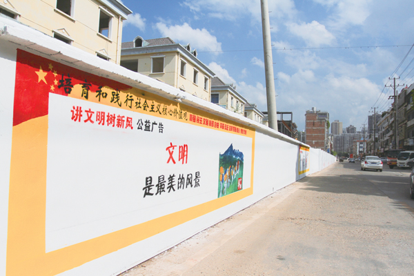 东沩北路墙面上的公益广告宣传画。