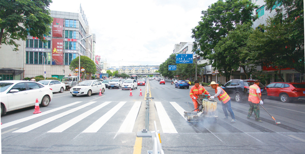 花明路斑马线上“新妆”。