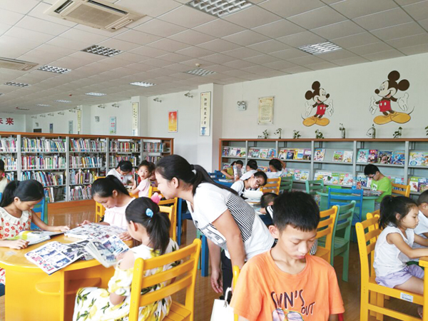 在少儿阅览室,沩乌中学即将升入初三的王尚莹正在书架前认真地查找着自己喜欢的书。最终,她和另一个同学共选中了6本书,打算借回家看。“看,我最喜欢看冰心写的书!这不看完了又来借了一本。”王尚莹一边向记者展示刚“淘”到的宝贝,一边笑着说。平时上学时,老师就教育她要养成看书的好习惯,每天要看半小时到1小时的课外书。暑假里她每天至少要看2小时的课外书。